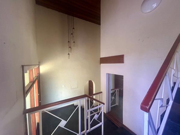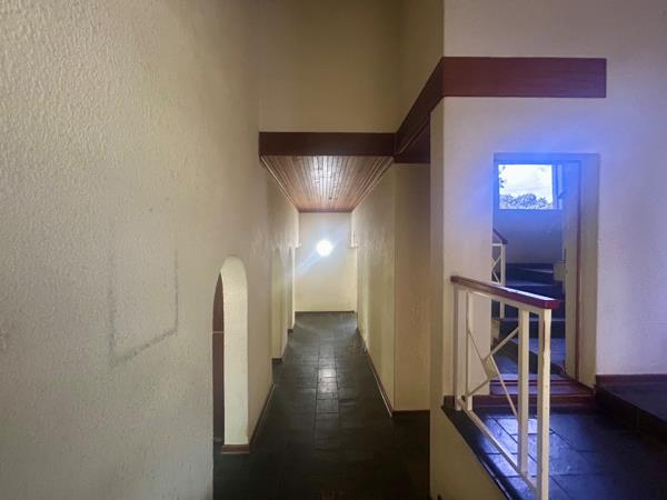 Discover this spacious multi-story residence nestled in the desirable suburban area of Ontdekkerspark, Roodepoort. Situated in a tranquil cul-de-sac with scenic mountain views, this property offers a unique architectural design and ample space for family living. The exterior features a light-colored rendered finish, a paved driveway, and multiple garage bays, providing generous parking for up to eight vehicles, including two covered garages.