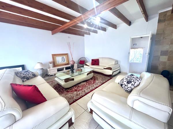 The home offers three bedrooms and two and a half bathrooms with a separate study. It was built on split levels and can easily be divided into 2 homes, should you require to do so with a small renovation. There are no less than 3 lounges, all of them opening up into the garden with the main lounge facing North West, towards the view. The separate dining room opens up with sliding doors also facing the view and is open plan towards the very well designed kitchen.