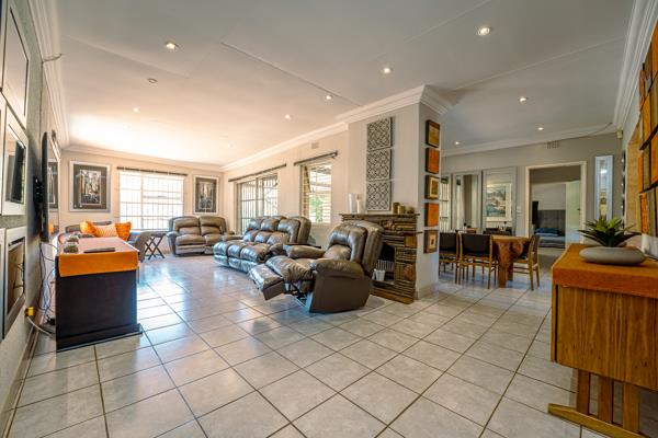 Enter this spacious, light, bright lounge area with a fireplace to keep you warm in winter and sliders to the entertainment for a welcoming breeze during the summer. Dining area with doors leading to the big entertainment area. Entertainment area: Enough space for a lounge area as well as a dining area. Built-in Braai, Ideal for family get-togethers.