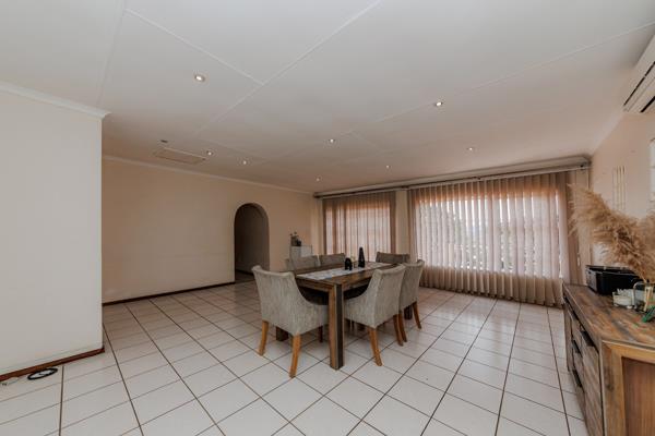 Family-sized space and fabulously positioned in Kloofendal. Offering quality finishes and spacious living areas - dining room, family room and lounge leading outside to a large, covered patio with braai area swimming pool and lush back and front garden. 3 Lovely bedrooms with laminated floors and modern bathrooms. Study. Excellent security with alarm, electric fence, 3 automated garages and carports. Extras include an 8-panel solar and inverter system. 4 Boreholes (3 are fitted).