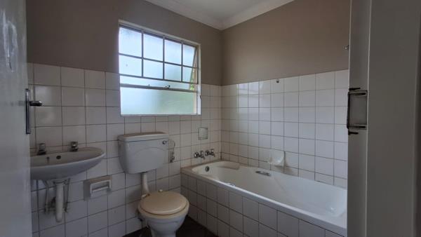 Both bedrooms are well-sized and feature built-in cupboards, while the bathroom includes a bath, basin and toilet, with natural light streaming in.