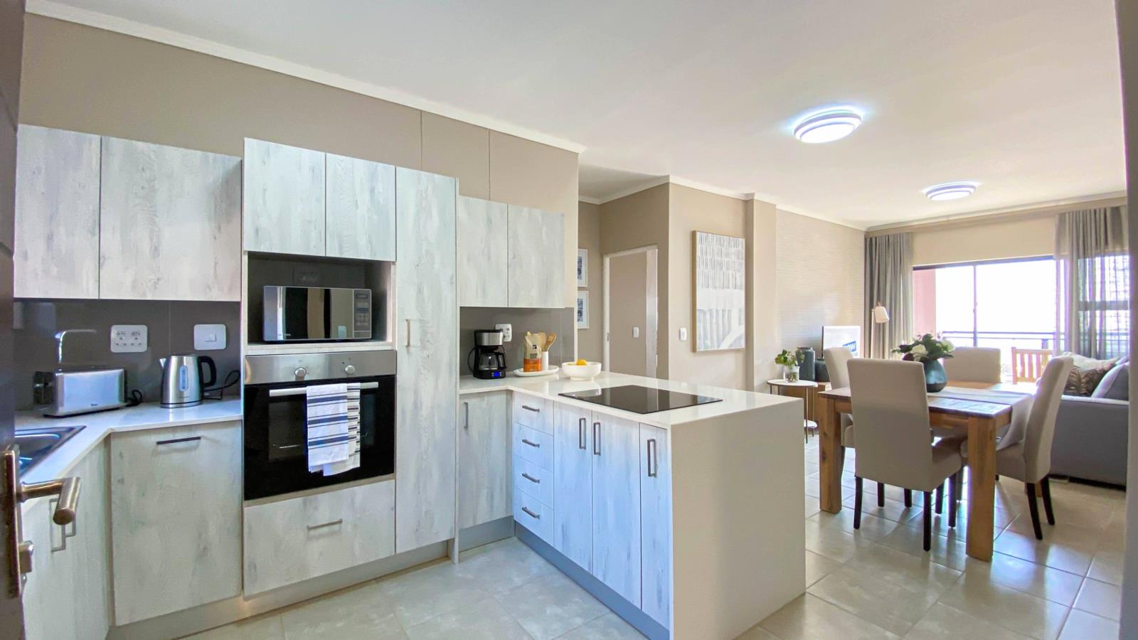 - Open-plan kitchen with a lounge area leading to a covered balcony