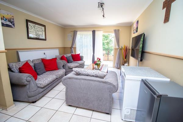 The lounge area is bathed in beautiful sunlight, creating a warm and inviting atmosphere throughout the day. Perfect for relaxing or entertaining guests, it offers a cozy space to unwind while enjoying the natural light streaming through the windows.