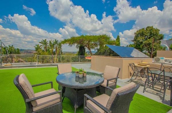 A rooftop entertainment space elevates the experience further, offering panoramic views over the entire property and stretching as far as the Magalies.