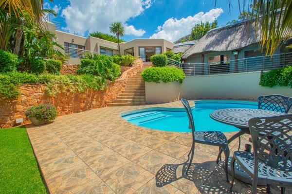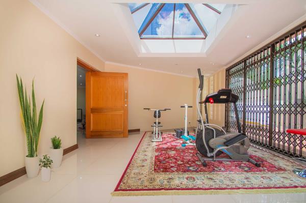 Additional features: borehole, 3-tier filtration system for municipal and borehole water, two 6,500L water tanks, heated swimming pool, solar geyser, CCTV camera system, two automated garages, parking for over ten vehicles, a striking Koi water fountain feature flowing along the driveway into the garden, a garden shed, air-conditioning throughout, heated towel rails, skylights, chandeliers, luxurious finishes, prepaid electricity, and a separate flatlet.