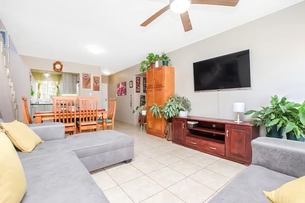 The living area opens onto a secure private garden that is spacious, landscaped, and fully fitted with irrigation. The swimming pool is a fantastic bonus, perfect for enjoying hot summer days in complete privacy, while a back-up water tank connected to the house adds extra peace of mind. For entertainers, the lapa with built-in braai is sure to impress.