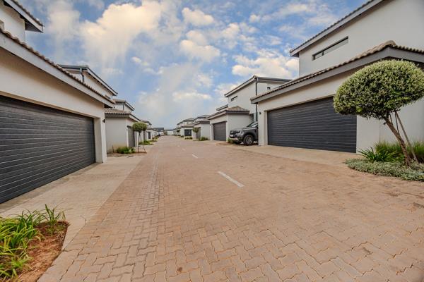 Discover modern living in this contemporary cluster home located in the desirable Little Falls, Roodepoort. The property showcases a clean architectural design with light-colored walls, dark trim, and striking tall feature windows that enhance its kerb appeal. Situated within a uniformly designed development, this two-story residence offers a well-maintained exterior and a welcoming entrance.
