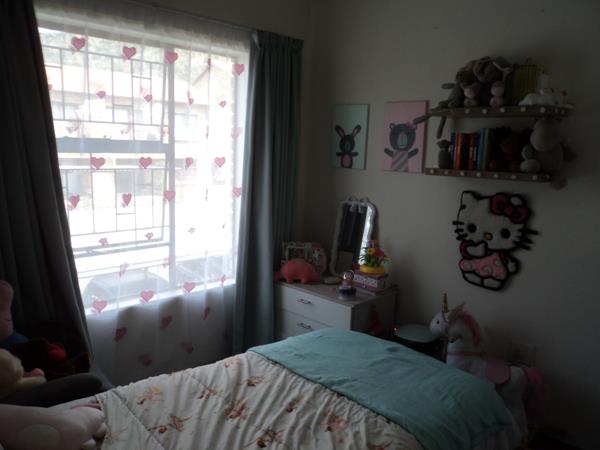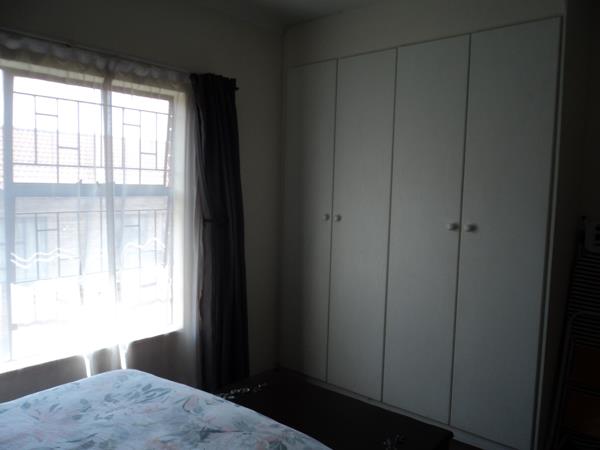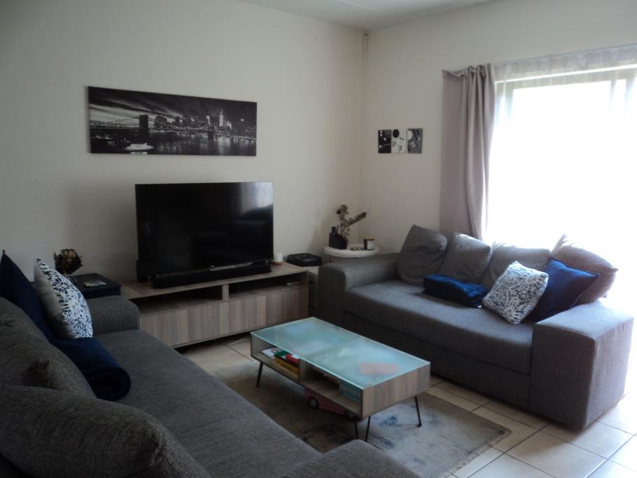 Open plan loungekitchen, sliding door from lounge to a small patio and communal garden, front door into lounge from the two covered parkings, Electricity is pre paid, no pets allowed. Shopping amenities and schools close by. Easy access to Hendrik Potgieter Road.