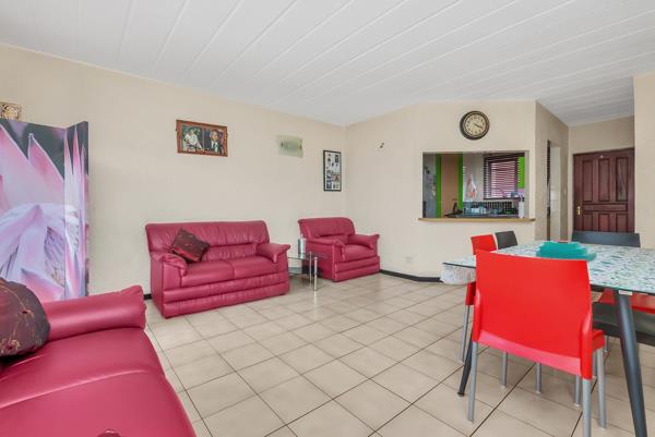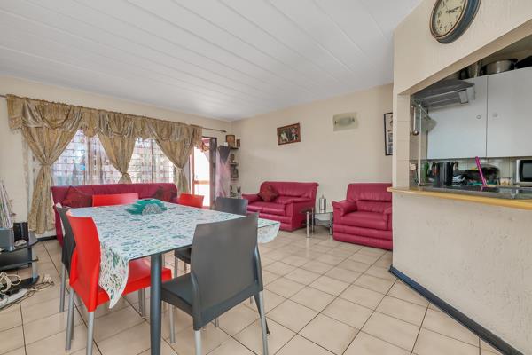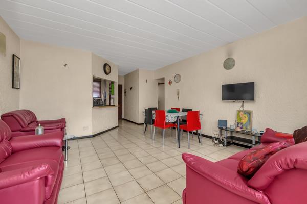 Open-plan lounge, dining, and kitchen with ample cupboard space