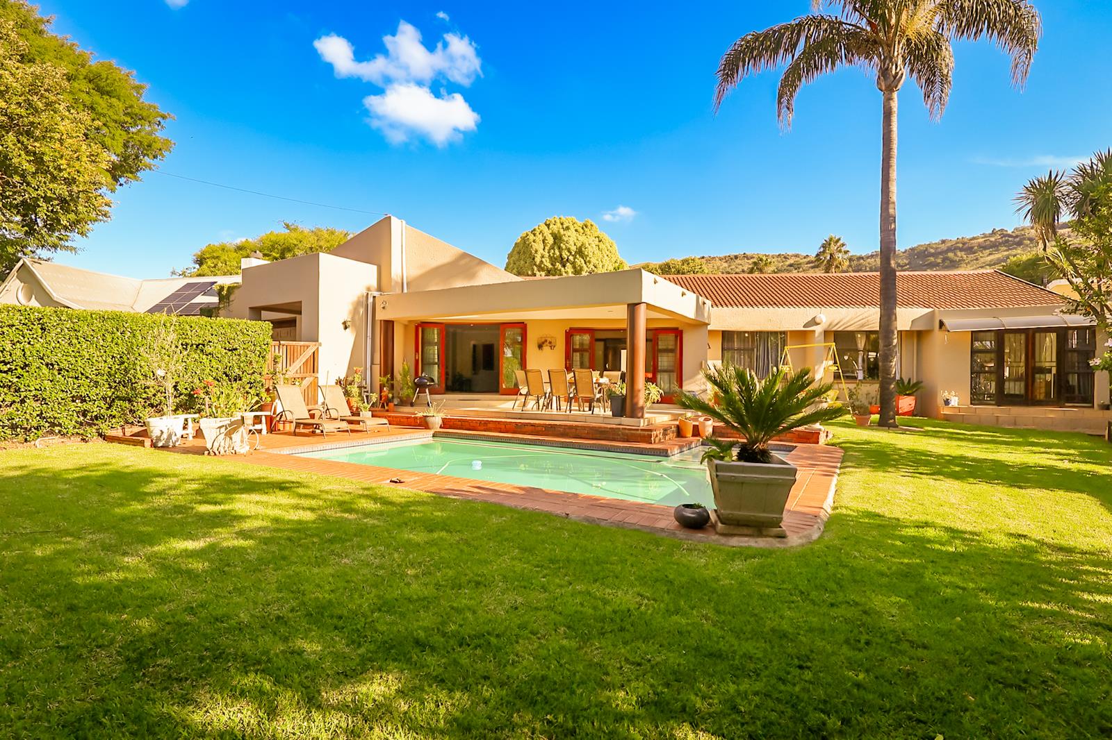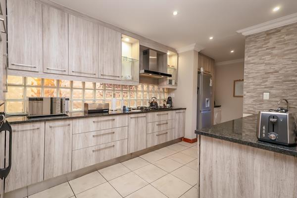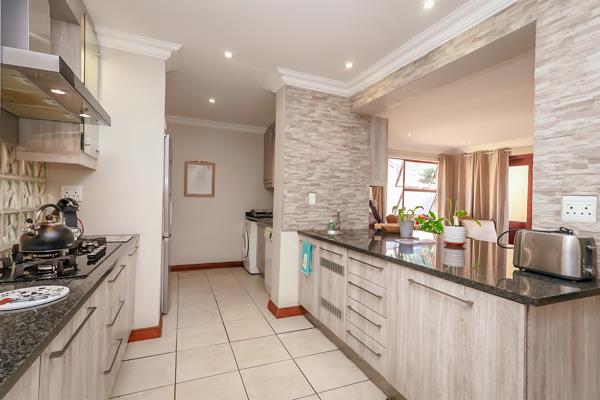 The main residence features four generously sized bedrooms and three well-appointed bathrooms, two of which are en suite, ensuring both privacy and convenience for the modern family. A sleek, contemporary kitchen fitted with a large gas hob and complemented by a separate scullery with space for all your appliances seamlessly connects to the light-filled open-plan living areas, creating an effortless flow and a warm, welcoming atmosphere throughout.