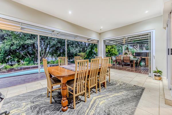 Large fold-away glass doors grace the living and patio areas this is a statement of true sense of open living as well as a seamless blend of tranquillity and refined comfort throughout. This living space opens onto a large patio with a built-in Pizza oven and braai to add to the family entertainment. An added convenience on the ground floor the guest bathroom for friends comforts.
