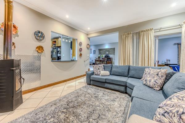The home offers a welcoming entrance hall, two comfortable lounges, the main lounge has a wood burning stove that heats up the home, two dining areas and a functional kitchen with a scullery, the heart of the home. The living area flows effortlessly to a functional kitchen including a scullery and gaselectric combination stove.