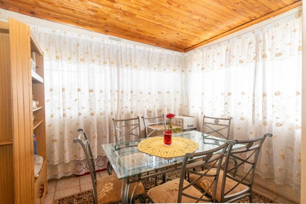 This golden oldie offers you a lounge with wooden floors and pressed ceilings, a tiled dining room with knotty pine ceilings, a sunroom and a foyer, it also consist of three spacious bedrooms with built in cupboards and pressed ceilings and a bathroom. The kitchen offers a stove with an extractor fan and a separate scullery and a separate laundry. Outside buildings include a storeroom, an upstairs room, a toilet and four carports.