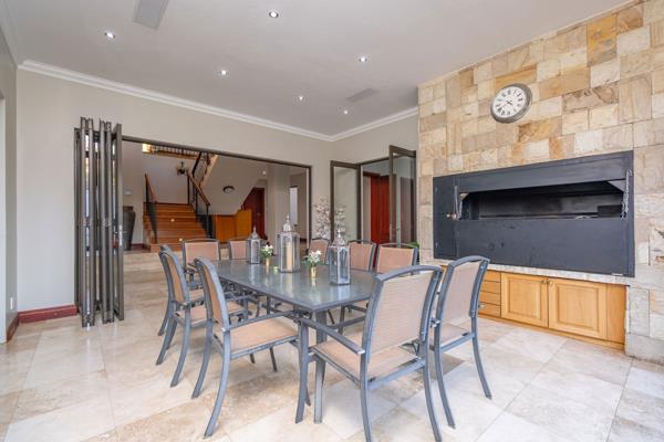 From the moment you enter, the tranquil water feature welcomes you into a double-volume entrance hall leading to expansive, open-plan living areas complete with a central gas fireplace cleverly dividing two lounges or cinema rooms, creating warmth and ambiance on chilly evenings.
