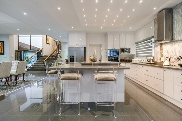 Set within a prestigious 24-hour manned security estate, the property includes alarm systems, CCTV cameras, electric fencing, electronic beams, guard house, intercom, security gates, burglar bars, and smartphone-integrated security ensuring complete peace of mind.