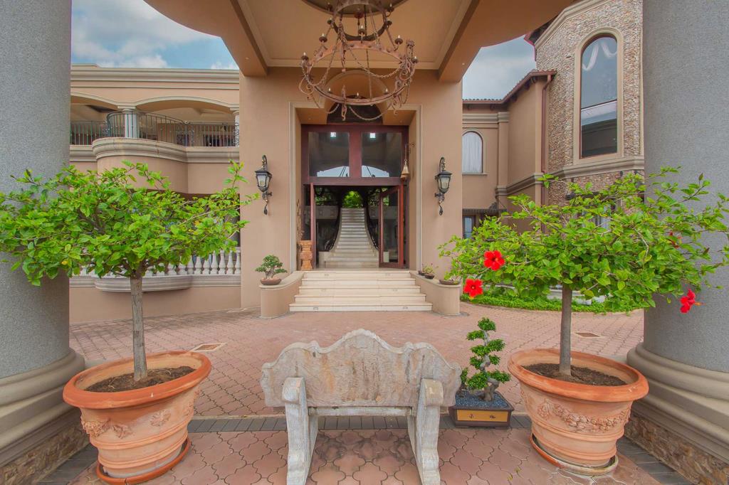 Additional features include a Sun City-inspired pool, Jacuzzi, tranquil water features, lush gardens, borehole, 1000kva generator, dog kennels, veggie garden, staff accommodation for three, and a fully secured perimeter with cameras, alarm, and a guardhouse.