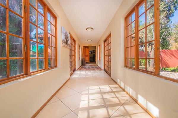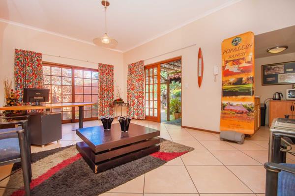 This one-of-a-kind property offers the perfect blend of work, play, and relaxation. The main house boasts 5 spacious bedrooms, 4.5 bathrooms, a cozy lounge with fireplace, TV room, upstairs pajama lounge, and expansive kitchen with scullery, pantry, and storeroom. Enjoy wellness at home with a private gym, sauna, and steam room, plus an undercover pool (to be renovated).