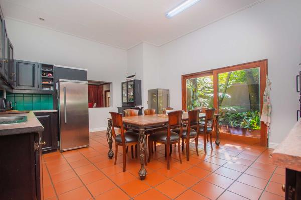 Step out onto a vast covered patio with skylights, leading to a boma, koi pond, kids playground, and lush botanical gardens with a river running through. Outdoor lovers will appreciate the mashie golf course, two dams, and an irrigation system maintaining the vibrant landscape.