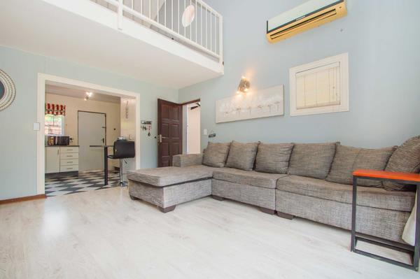 Step into a bright and airy lounge, with air-conditioning, featuring a double-volume ceiling that creates a sense of spaciousness and elegance. The open-plan design seamlessly connects the living area to the kitchen, perfect for entertaining or family gatherings. The kitchen boasts a convenient pantry cupboard and space for an under-counter appliance, ensuring ample storage and functionality.