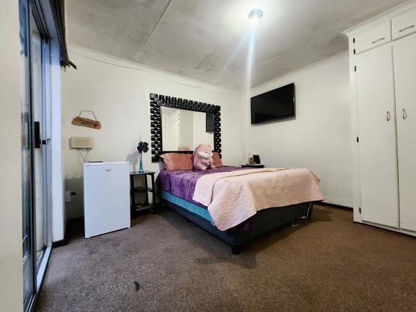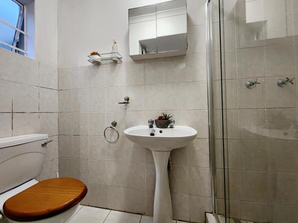 The main, en-suite bedroom, fully carpeted, fits a queen-size bed and provides generous cupboard space. The second bedroom, also carpeted, is strategically placed and can accommodate a double bed.