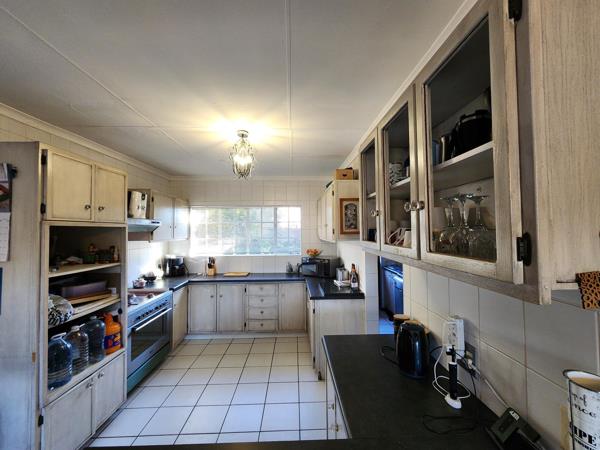 Living area consists of two lounges and dining room. One lounge has a bar and fire place. Kitchen is large, well designed with ample cupboard space, breakfast nook and scullery..