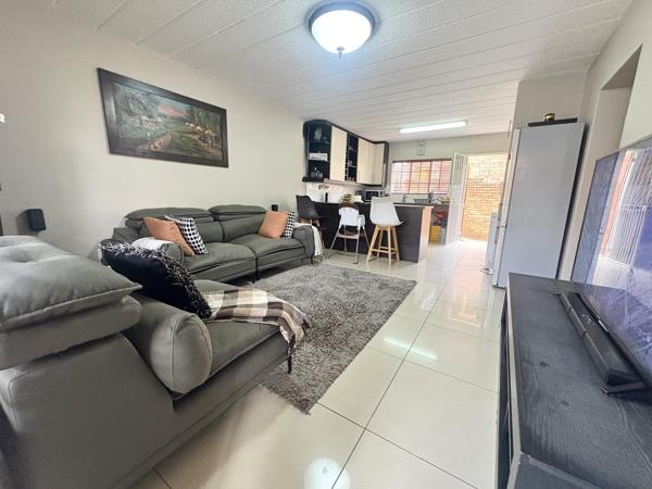 Step inside to discover a bright and spacious open-plan lounge, stylishly tiled and offering plenty of room for your family to unwind. The modern kitchen is a chefs dream featuring ample cupboard space, generous countertops, a breakfast counter, pantry, room for two appliances, and a dedicated nook for a double-door fridge. A back door opens to a large private courtyard, adding further convenience and space.