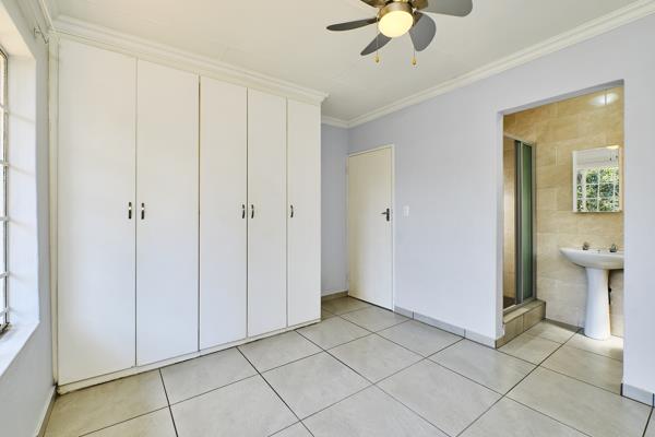 Both bedrooms are generously sized and include built-in cupboards. The main bedroom boasts an ensuite bathroom with a shower, toilet, and basin, while the second bathroom offers a bathtub for added convenience.