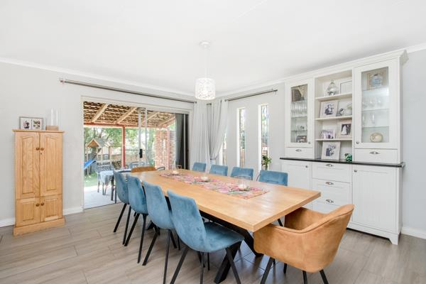 Sliding doors open out to a covered patio overlooking a lush, established garden complete with jungle gym, sparkling pool and relaxing charming pergola - perfect for weekend braai''s and sundowners. A serene and private outdoor retreat for the whole family to enjoy.