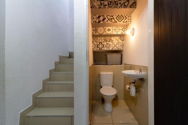 Heading upstairs, you''ll find a landing area with a linen cupboard for additional storage. The main bedroom is a sun-drenched retreat with access to a breezy Juliette balcony. The second bedroom features a corner cupboard and is large enough to comfortably accommodate a double bed. The upstairs bathroom is elegantly tiled and equipped with a single vanity, shower, and bathtub.