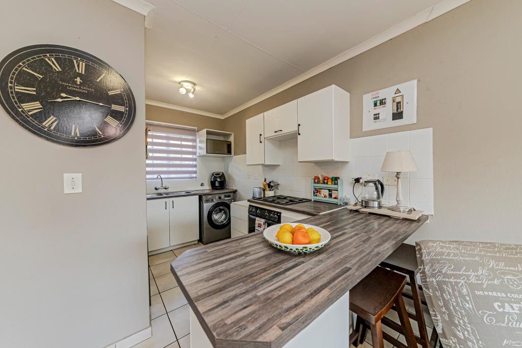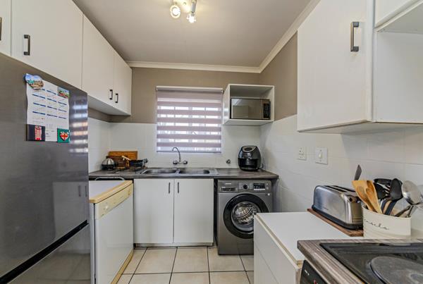 The apartment is tiled throughout, with a large livingdining area is well designed to maximise the floor space, enjoy ease of access from the living area to the open-plan kitchen. The fitted kitchen, loads of counter tops add lots of extra space and room for your electrical appliances. The balcony is private, overlooks the complex, this is a great entertainement space facing to appreciate the African sunsets and wind down with that end od day spritzer.