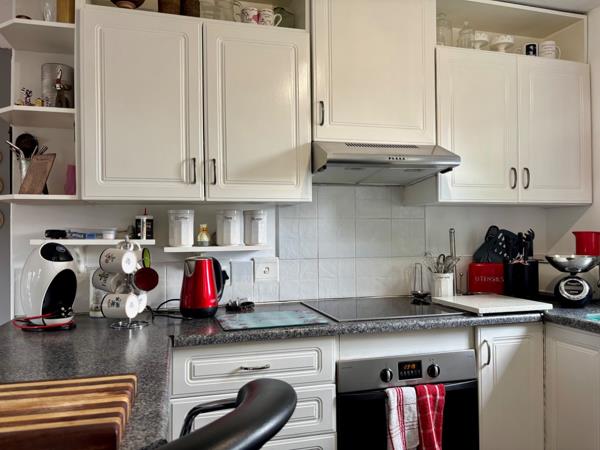 The functional kitchen is equipped with ample white cabinetry, dark speckled countertops, an integrated oven, electric hob, and extractor hood, catering to all your culinary needs.Space for 2 additional appliances, while the garage also caters for a laundry area with plumbing points.