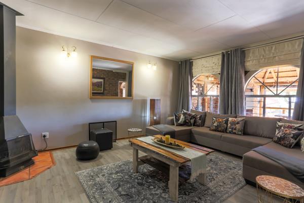 An additional covered entertainment area, overlooking a solar heated pool, includes a second braai area, making it perfect for hosting gatherings.