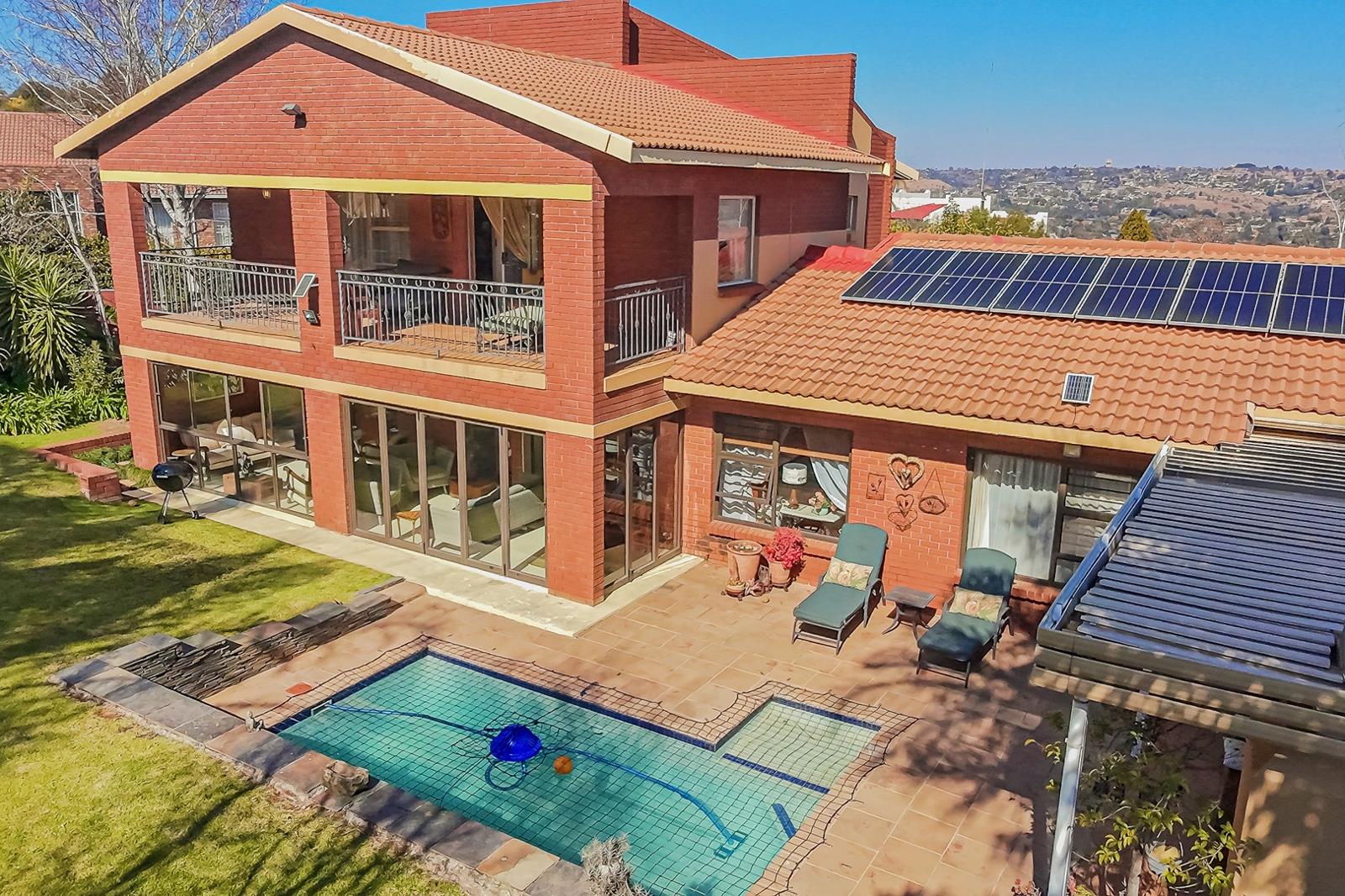 Further value-adds include staff quarters, four garages, ample storage, an alarm system, and an efficient 6-panel solar system with a 5kVA inverter ensuring peace of mind and reduced energy costs.