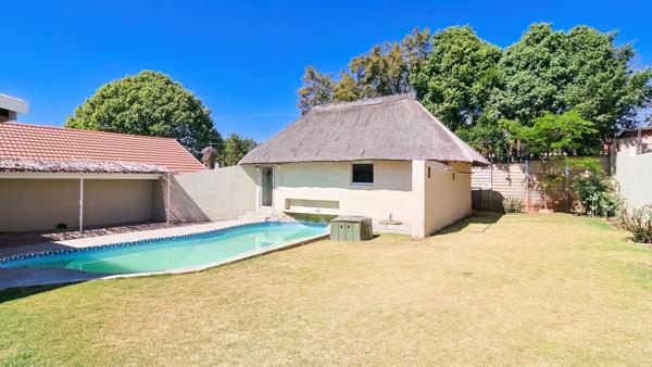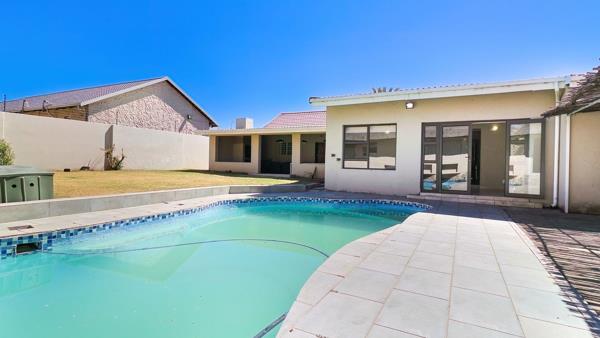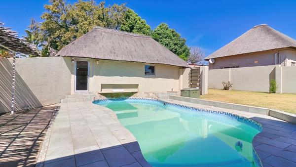 Step outside onto a large covered patio with a built-in braai, overlooking the sparkling pool and manicured garden perfect for entertaining. Behind the pool is an additional room that can be utilized as a storagestudy area or a multi-purpose space.