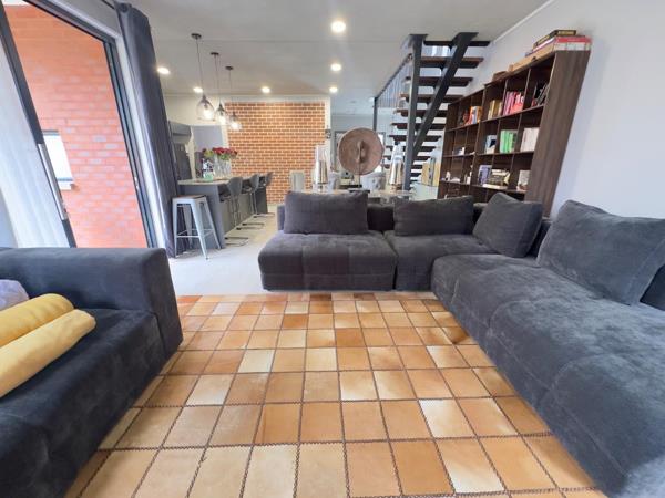 The open-plan dining area seamlessly flows into the large lounge area, creating an inviting space for entertaining or relaxing. Step outside to the covered patio, complete with a built-in braai, perfect for enjoying outdoor meals. The wrap-around yard includes a covered lapa, an added touch by the owner that enhances the outdoor lifestyle.