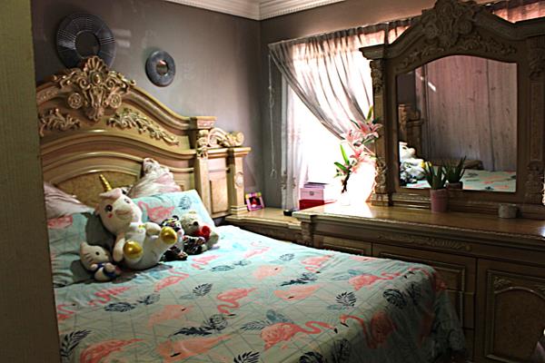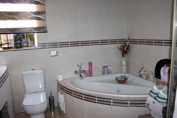Situated on a corner with 2 entrances, this glamorous family home consists of 3 double-size bedrooms with lots of BIC''s, the main bedroom has an en-suite bathroom with a corner bath and shower. The main bathroom also has a corner bath. Sunken lounge with sliding door, nice-sized dining room, rosewood kitchen with granite tops. Double garage leading into the main house. 2 double carports.