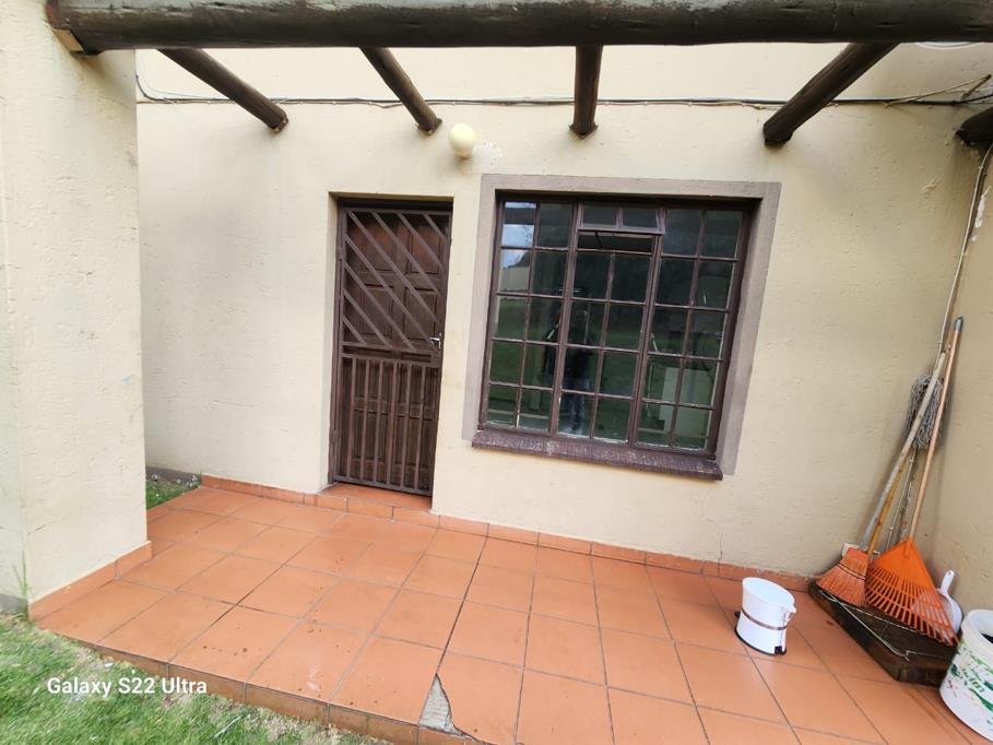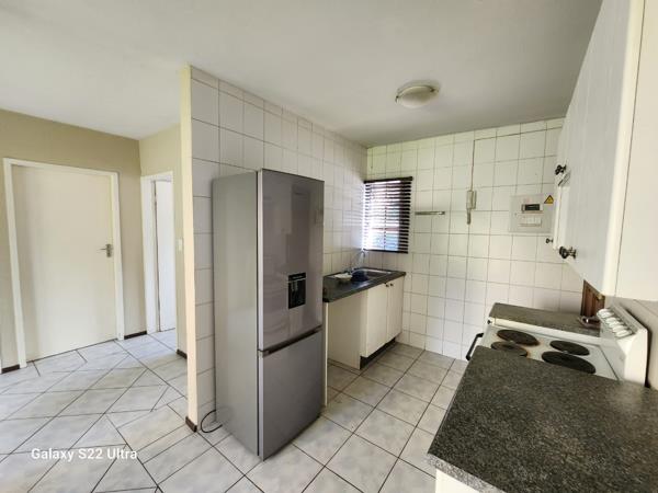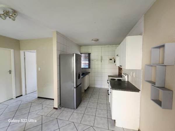 This beauty offers you a tiled lounge with a door leading to the patio and the garden, an open plan kitchen with a stove, scullery and a laundry, two tiled bedrooms with built in cupboards, a tiled bathroom and a carport. The complex offers good security, playground for kids and a park with swings etc.