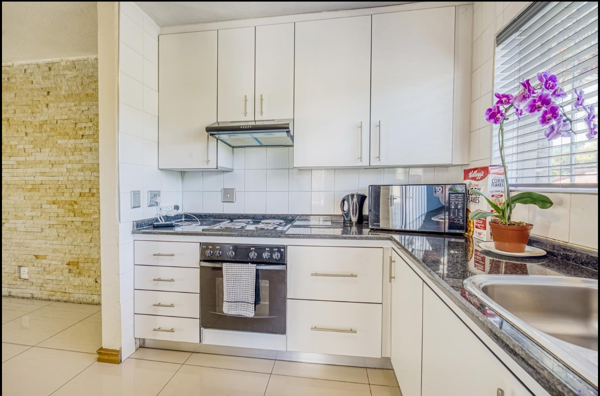 The apartment features a well sized galley kitchen that leads off the open-plan lounge and dining area, creating a comfortable flow for everyday living and entertaining. The entire apartment is tiled, making it both practical and easy to maintain. Residents enjoy communal amenities including a refreshing swimming pool, communal braai area, well-maintained gardens with palm trees, two covered carports. For modern connectivity, the unit is fibre-ready, supporting high-speed internet access.