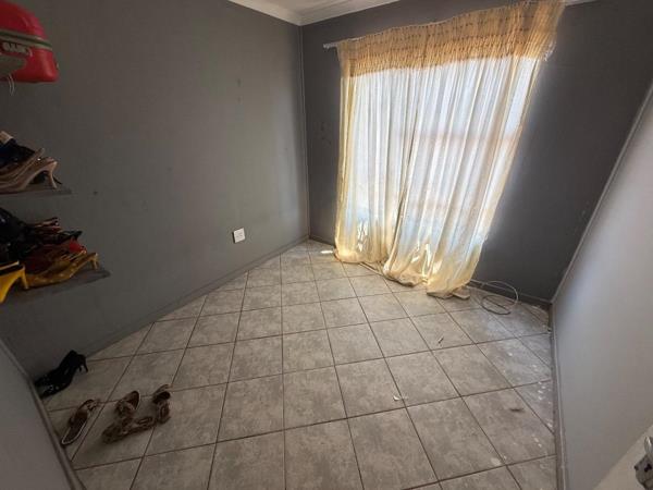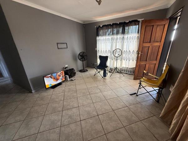 You have 3 tiled bedrooms with one bathroom. Then there is a kitchen and a very spacious lounge area. The second living area is spacious enough for a 4th bedroom or a TV room with loads of space.