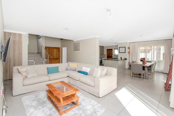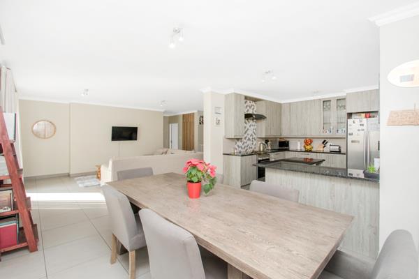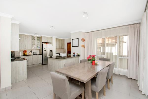 This double storey home offers a perfect blend of space, style, and comfort. As you enter, youre welcomed by an open and airy entrance hall leading into the TV room and dining area, seamlessly flowing into a modern kitchen with ample cupboard space.
