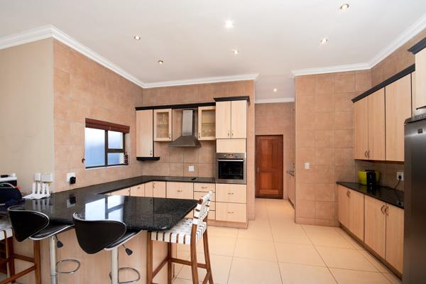Step outside to the enclosed patio, complete with a built-in braai, ideal for alfresco dining and gatherings. With a generous 4-car garage this home offers both functionality and comfort.