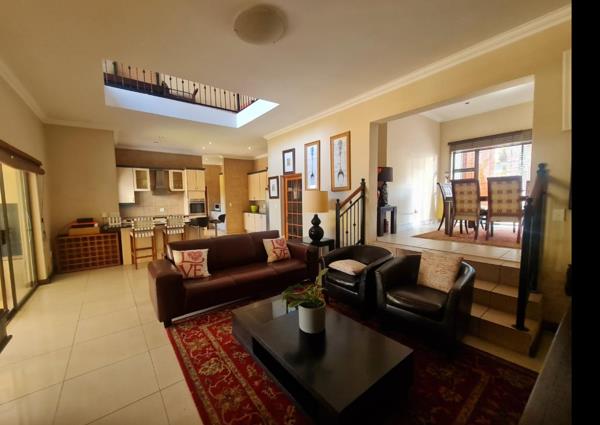 Situated in the highly sought-after Ruimsig Estate, this spacious home combines modern design, open-plan living, and breathtaking views of the valley and Featherbrooke Estate.