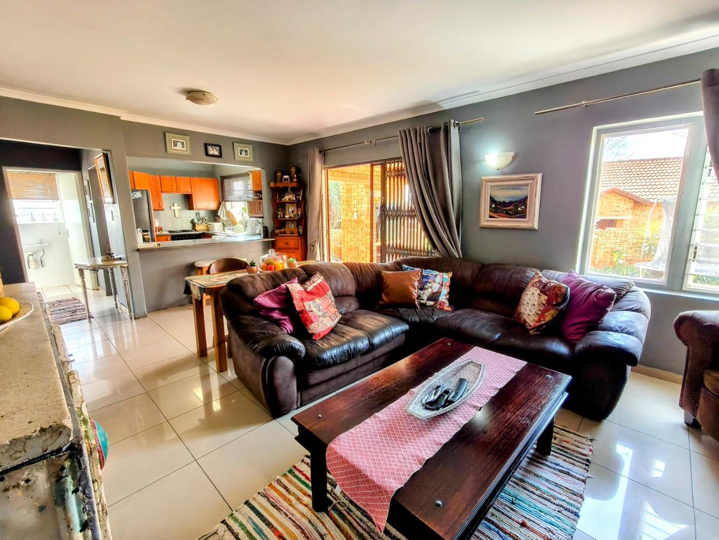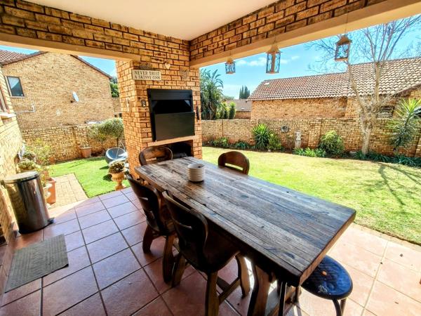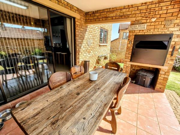 Set in a secure estate with a strong community feel, this inviting home is perfectly positioned close to schools, shops and everyday essentials. Whether youre a busy family needing space or a professional working from home, this property ticks every box. The downstairs welcomes you with sunlight and space. The open plan layout connects the kitchen, lounge and dining area to a covered patio with built-in braai, making it easy to entertain or unwind. Direct access from the double garage keeps daily life simple.