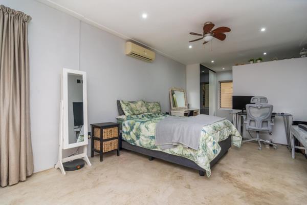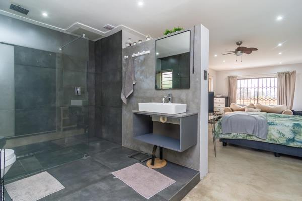 - Expansive master suite with open-plan design, stylish screed flooring, and ample cupboard space