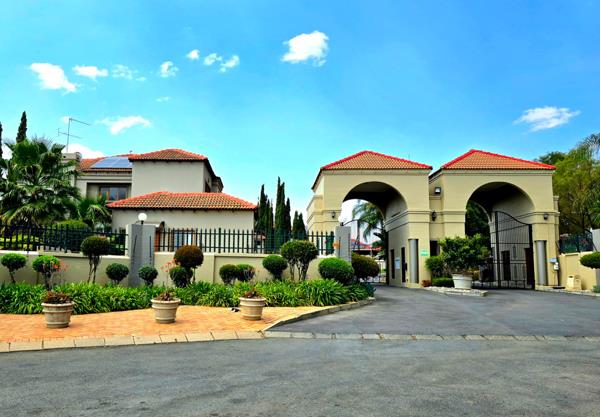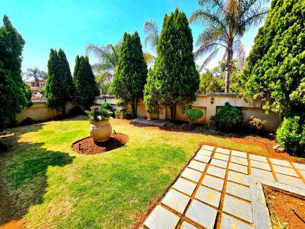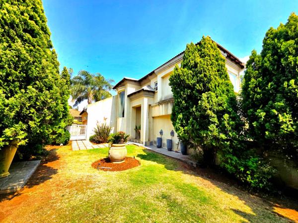 This distinguished Mediterranean-style residence, situated within a secure estate in Ruimsig, Roodepoort, presents an exceptional opportunity for discerning homeowners. Its impressive curb appeal is defined by a stucco exterior, a classic tiled roof, and meticulously maintained tropical landscaping, including mature palm trees. An ornate pedestrian gate and paved driveway lead to a double garage. The expansive 508.00 sqm interior features four well-appointed bedrooms, three and a half bathrooms, including two ensuites, two spacious lounges, a dedicated dining area, and a modern kitchen with a pantry. A separate study, air conditioning, and a fireplace enhance the open-plan living experience.