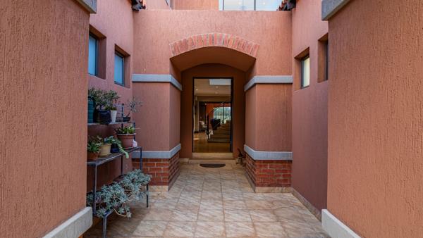 From the moment you arrive, your eyes are drawn to the beautiful architectural blend of red brick, cemcrete walls, and cemcrete flooring, a seamless balance of modern design and timeless elegance. The exterior, finished in high-quality Marmoran paint, adds to the homes lasting appeal and refined character.