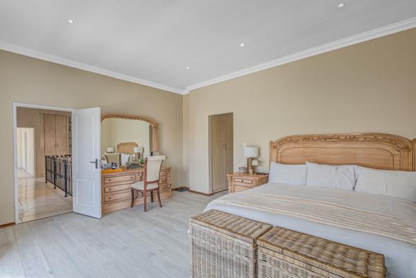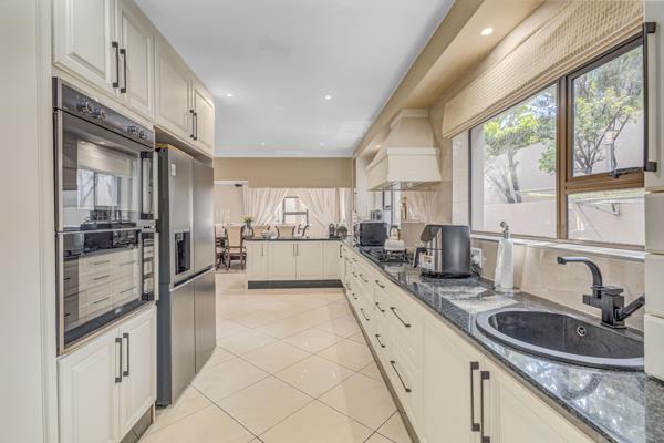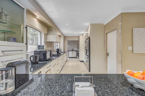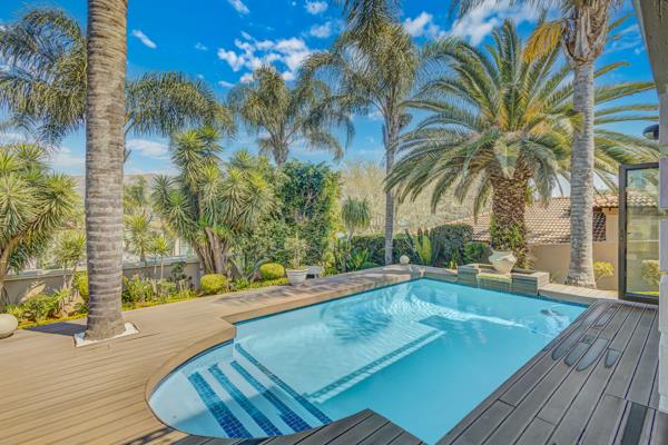 This luxury home in Ruimsig Country Estate has strong Mediterranean influences. The spacious open-plan downstairs area boasts three inviting lounges, a substantial dining space, and a chefs dream kitchen complete with a separate scullery and pantry. Seamlessly extend your living area to include the extensive patio, with built-in braai. Additional folding glass doors open to the sparkling pool and lush outdoor garden.