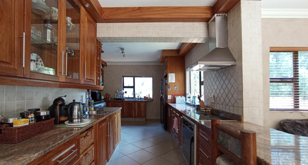 Designed with lifestyle in mind, this property offers exceptional outdoor entertainment. A large, covered patio with a built-in braai verlooks the sparkling swimming pool and manicured garden, creating the ideal setting for gatherings. Adding further value is a private outside cottage with its own shower and toilet.