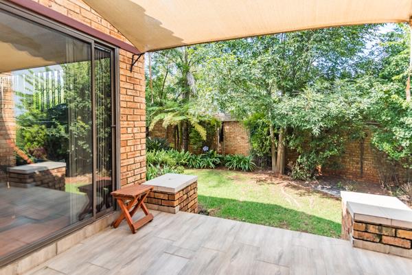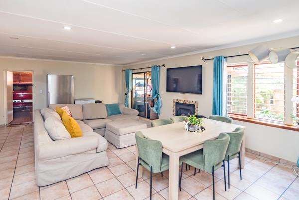 This townhouse offers comfortable family living in a secure and welcoming environment. The home features three bedrooms with built-in cupboards, 2 bathrooms main en-suit and family bathroom. The open-plan kitchen flows seamlessly into the dining and lounge area, creating a bright and inviting living space. An enclosed braai room opens onto a patio and a private garden, perfect for entertaining and giving children a safe area to play. The property includes two garages, additional open parking, burglar bars on all windows and sliding doors, and access-controlled security for peace of mind.