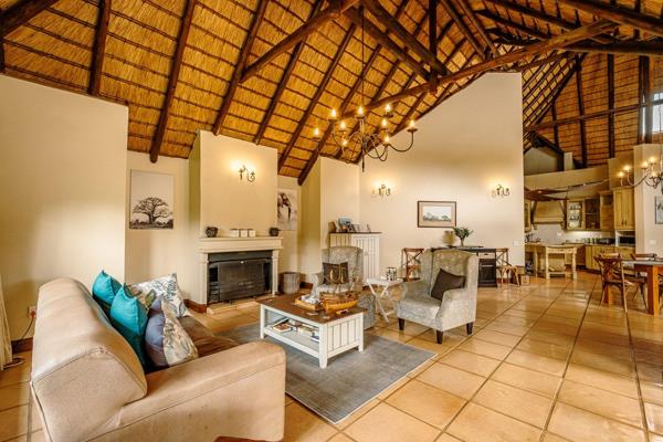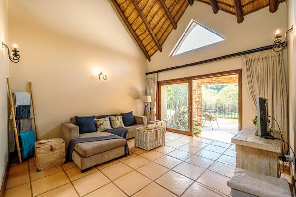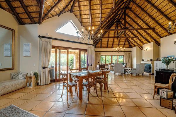 The open flow kitchen, dining and living areas are all surrounded by natural light. The entire living area opens up onto an entertainment braai area, overlooking the sparkling swimming pool and tranquility of the garden.